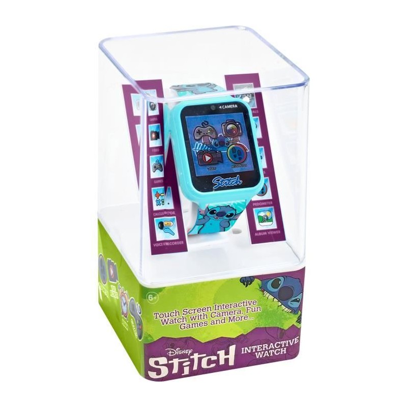 Cette montre interactive pour enfants propose un affichage analogique et numérique, 6 jeux, une caméra selfie, un enregistreur vocal, un podometre, une alarme et une calculatrice. Autonomie de 2 semaines a 1 jour selon l'utilisation. Inclus : câble USB, guide et batterie rechargeable.