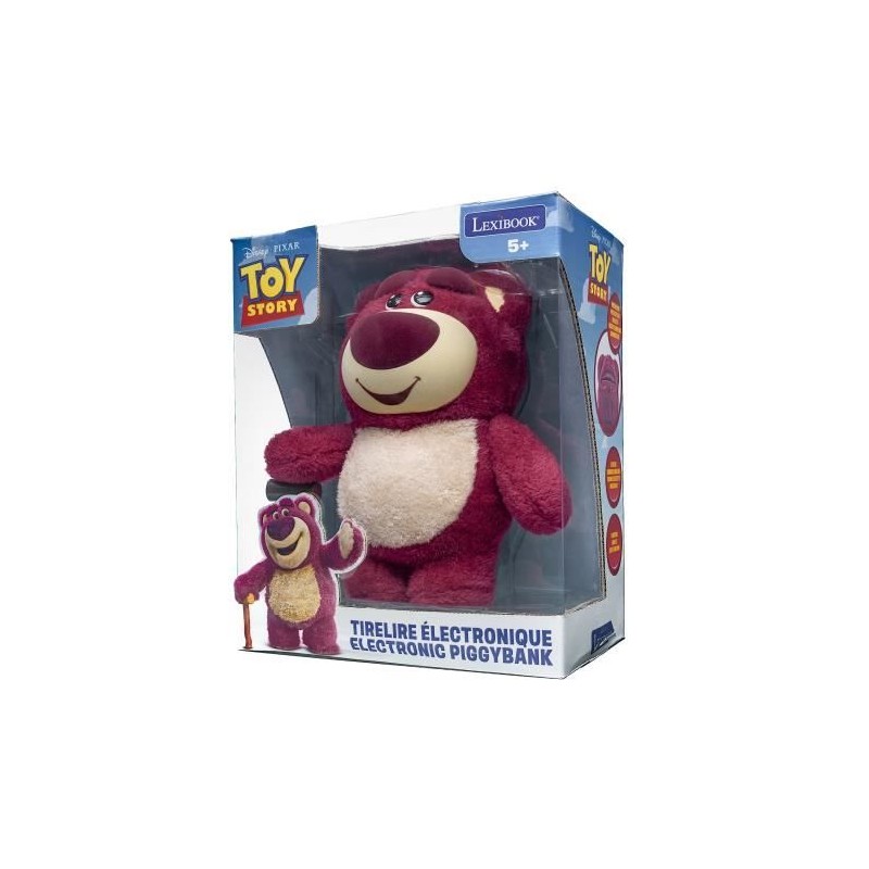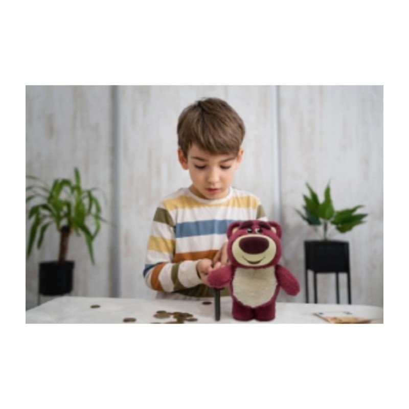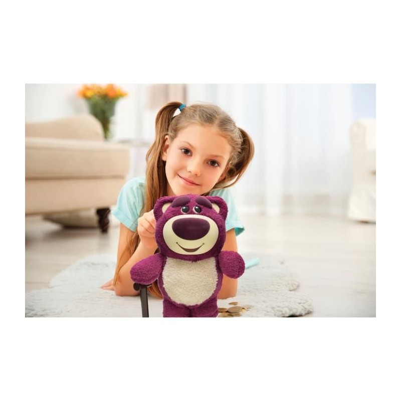 Une tirelire Lotso pour garder votre argent en sécurité : ouvrez votre tirelire grâce a la canne de Lotso. Un adorable design Losto avec une finition douce ! Effets sonores inclus ! Pratique : deux fentes disponibles, une pour les pieces et une pour les billets.
