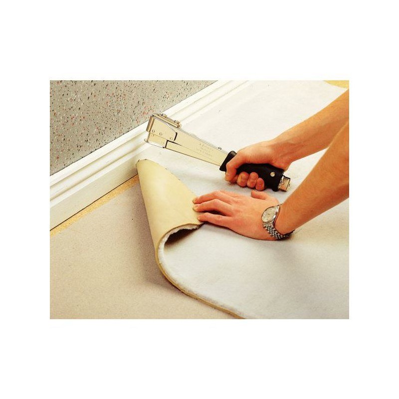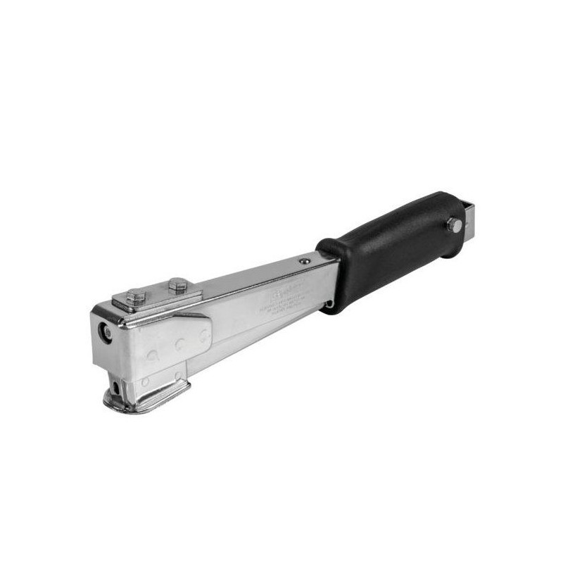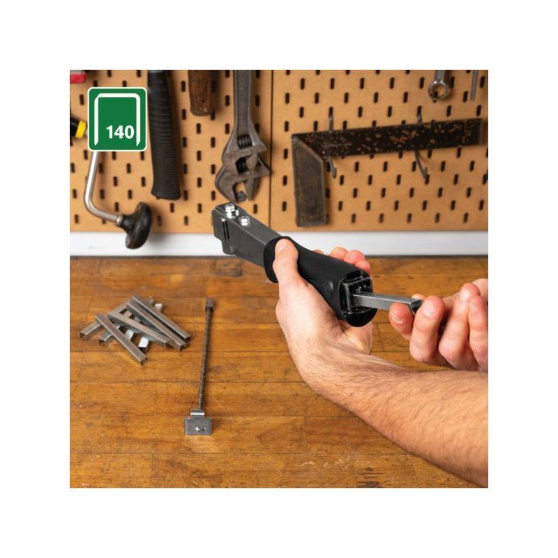 Marteau agrafeur robuste tout acier, idéal pour l'isolation, la toiture et les moquettes lourdes. Compatible agrafes n°140 (10-14 mm). Léger, durable, avec plaque tampon et poignée softgrip. Chargement rapide et fabrication suédoise. Garantie 2 ans.