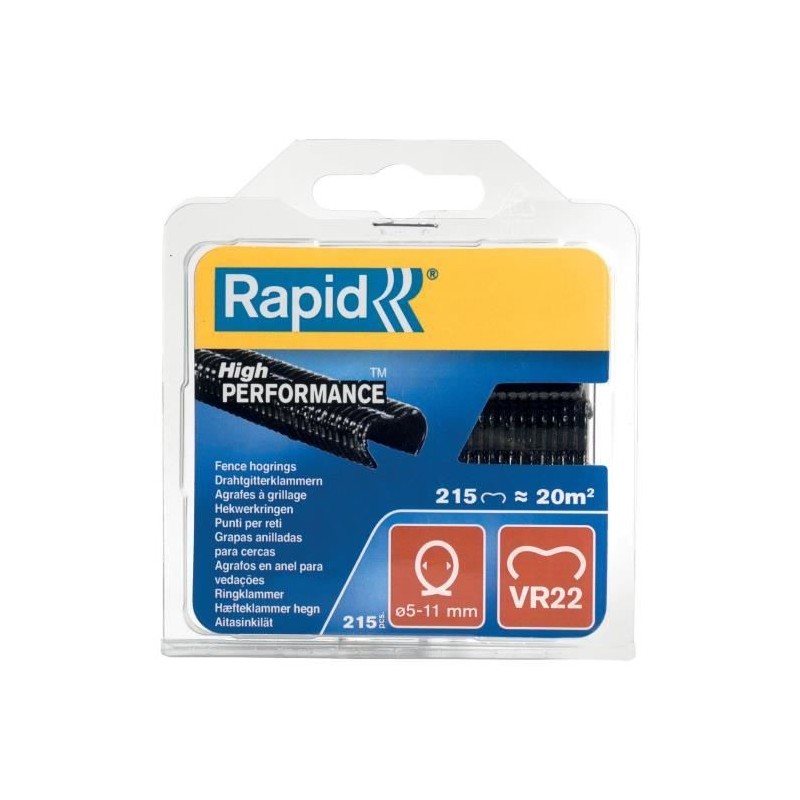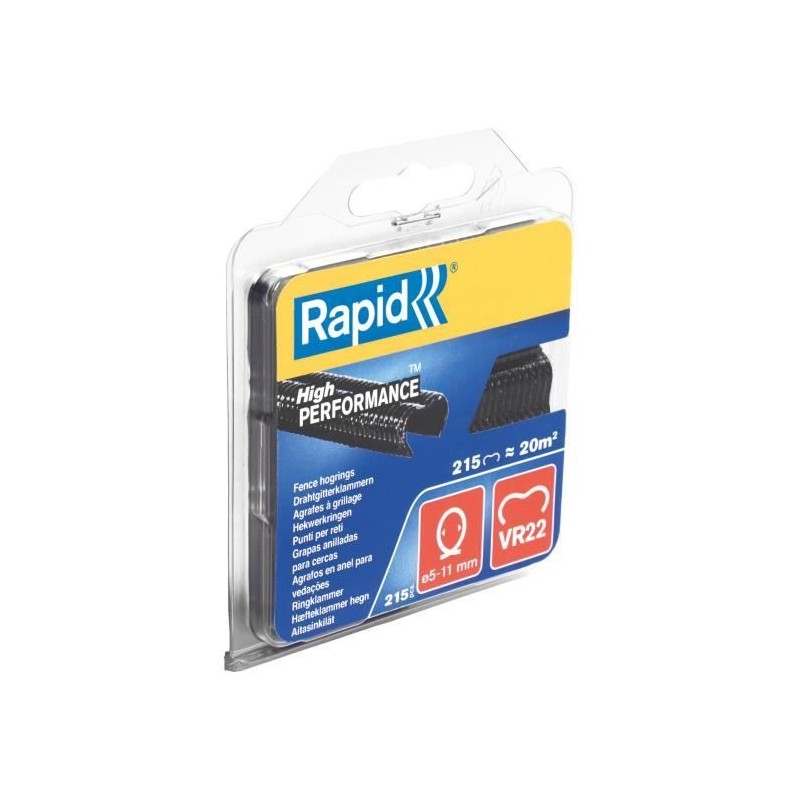 Ce blister de 215 agrafes VR22 noires de la marque RAPID est idéal pour fixer le fil de clôture de 5 a 11mm. Les agrafes sont compatibles avec les pinces a grillage FP20 et FP222. Fabriquées en acier, elles sont résistantes et durables.