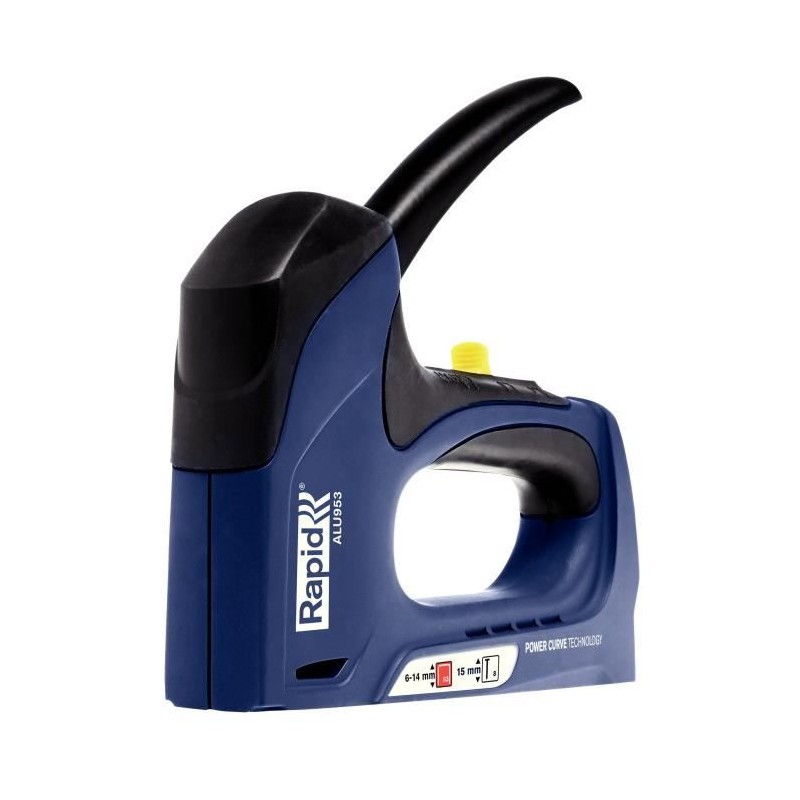 L'agrafeuse manuelle ALU953 de RAPID avec la nouvelle technologie PowercurveTM a été développée avec une physiothérapeute pour une réduction jusqu'a 65% de l'effort. Non seulement le déclenchement se fait plus aisément, mais il s'ajuste a la puissance de votre main. Le corps en aluminium est a la fois robuste et léger tandis que le mécanisme intérieur est tout en acier.
