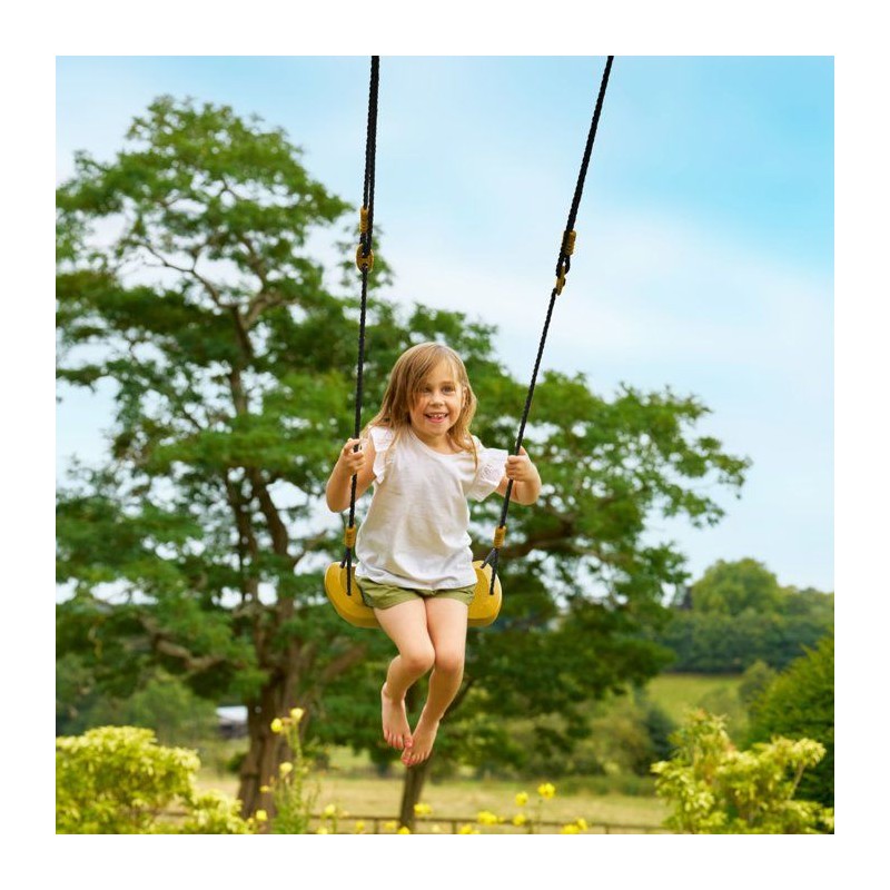 La balançoire TP CLASSIQUE est conçue pour les enfants des 3 ans. Son assise en plastique soufflé rotomoulé haute densité offre une surface antidérapante pour plus de sécurité. Les cordes en nylon imputrescible sont résistantes aux intempéries. Facile a installer sur un portique de 190 a 250 cm, elle assure des moments de jeu agréables en plein air.