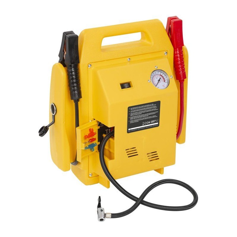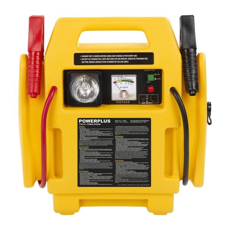 Soyez toujours pret sur la route avec Powerplus Alimentation Électrique POWX411 qui peut vous servir non seulement d'aide au démarrage, alimentation ou compresseur, mais aussi d'éclairage de secours. Avec cet appareil 4-en-1 portable vous aurez toujours de l'énergie a portée de main. Vous pourrez faire redémarrer les voitures et les motos en panne de batterie, et grâce au câble d'alimentation 12 V DC inclus, vous pouvez également alimenter les appareils électroniques avec du CC. En outre, l'appareil dispose d'un compresseur intégré avec lequel vous pouvez, par exemple, gonfler rapidement les pneus de vélo ou de voiture.