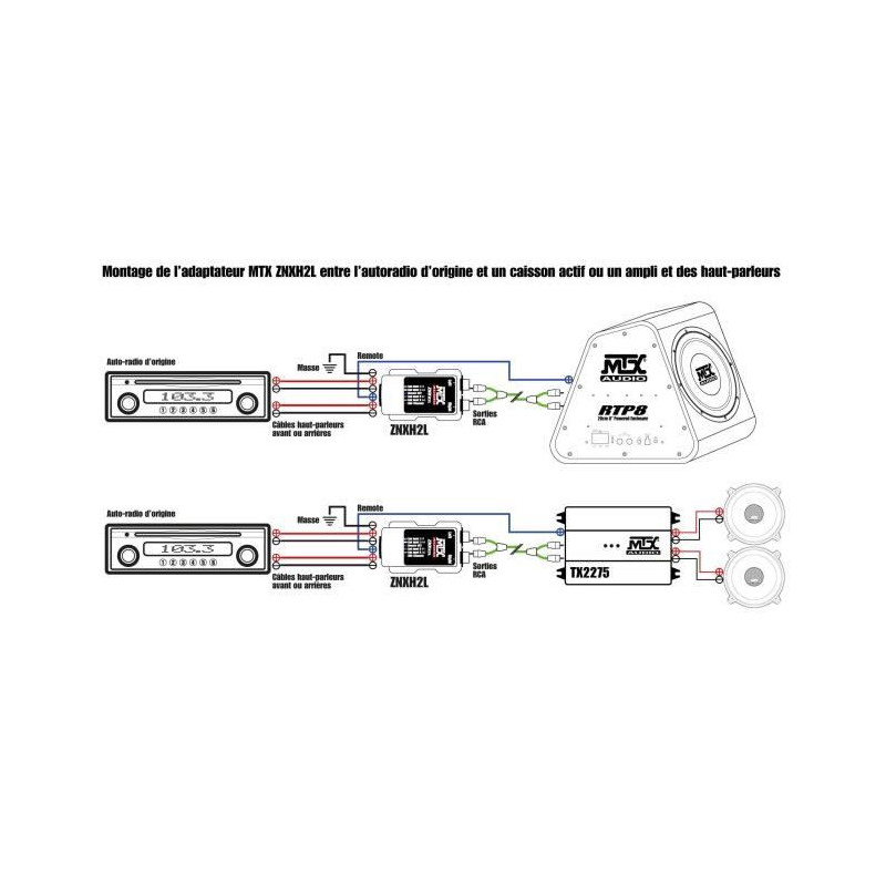 Adaptateur - MTX AUDIO - Câbles HP vers RCA 8V - Sortie ”Remote”