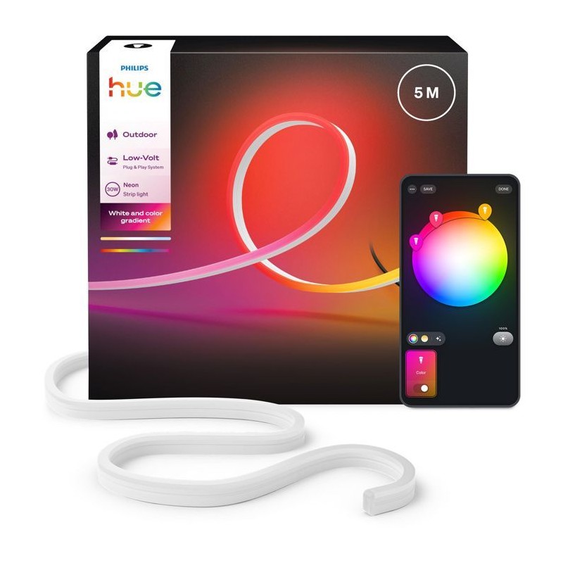 Ruban LED - PHILIPS HUE - Neon extérieur - 5 metres - 1100 lm - Ambiance - Ajustable - Résistant - Base tension
