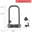 Cet antivol U est conçu pour sécuriser les vélos, les VTT, les motos, les scooters, les barbecues, le mobilier de jardin ou d'autres articles extérieurs. Protégez votre vélo grâce a sa anse en acier cémenté pour une résistance maximale a la coupe et au choc. Cylindre de haute sécurité