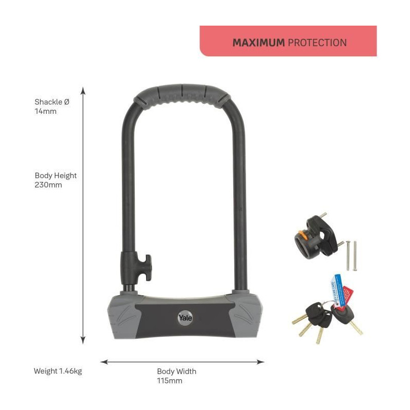 Antivol U a clé - YALE - YUL3/14/230/1 - Certifié Sold Secure Gold, Garantie a vie - 4 clés fournies - 23x11,5x14 cm