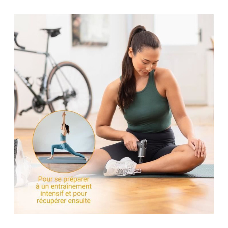 Le pistolet de massage MEDISANA MG 560 combine chaleur apaisante et froid revigorant grâce a sa technologie Peltier. Avec 10 niveaux de percussion et 3 intensités, il soulage efficacement les tensions musculaires. Écran LED intuitif, 4 tetes de massage et autonomie de 2 a 2,5h. Recharge USB-C et arret automatique apres 10 minutes pour une utilisation sécurisée.