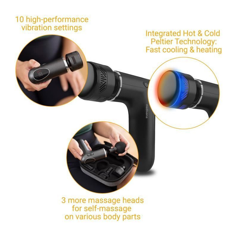 Pistolet de massage chaud & froid - MEDISANA - MG 560 - 10 intensités de percussion - 3 niveaux - 4 accessoires - Noir