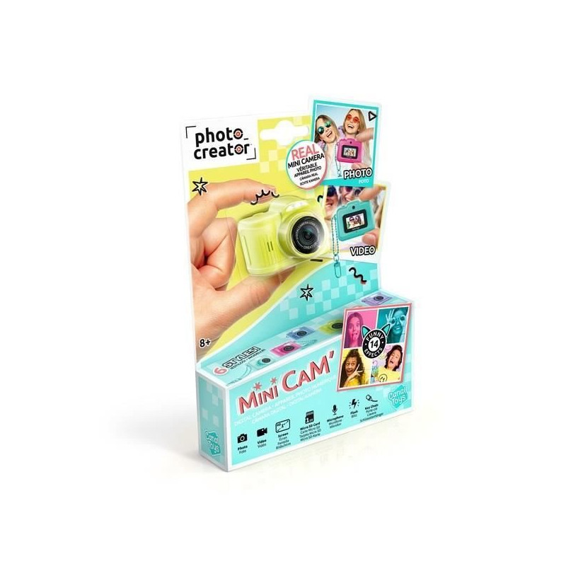 Découvrez le mini appareil photo numérique CANAL TOYS Mini Cam' - Pro, idéal pour les enfants des 6 ans. Avec sa mémoire intégrée et sa batterie rechargeable, il permet de capturer des photos et vidéos partout grâce a son porte-clé. Inclus : mini-écran, filtres et carte mémoire de 1Go.