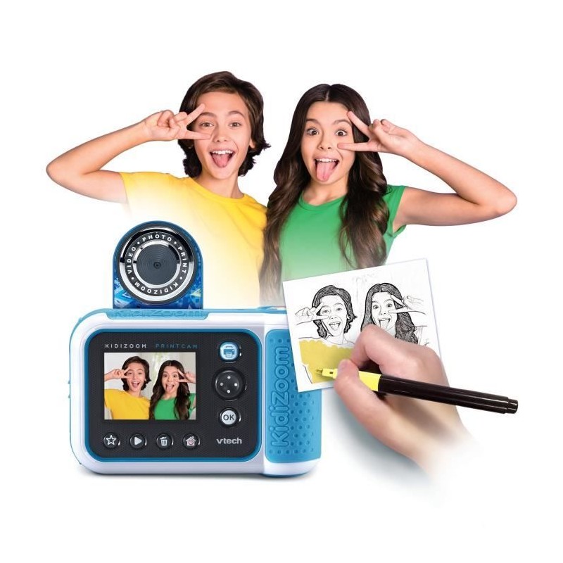 KidiZoom Print Cam Graffiti - 5 - 13 ans Un appareil photo HD pour personnaliser et imprimer ses photos ! Appareil photo & vidéo HD avec mode selfie et détection des visages. Magique ! L'enfant imprime directement ses photos ! + de 40 effets spéciaux et 60 cadres et tampons pour personnaliser ses photos. Différents