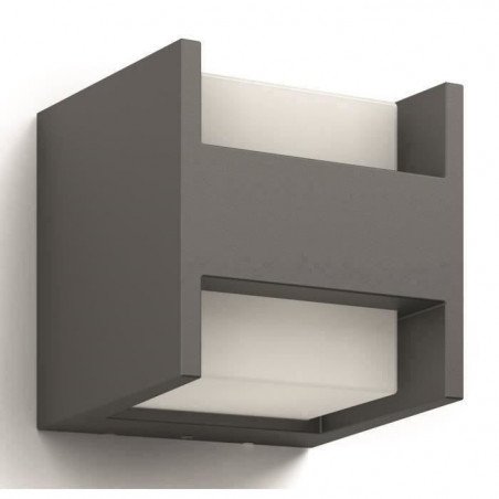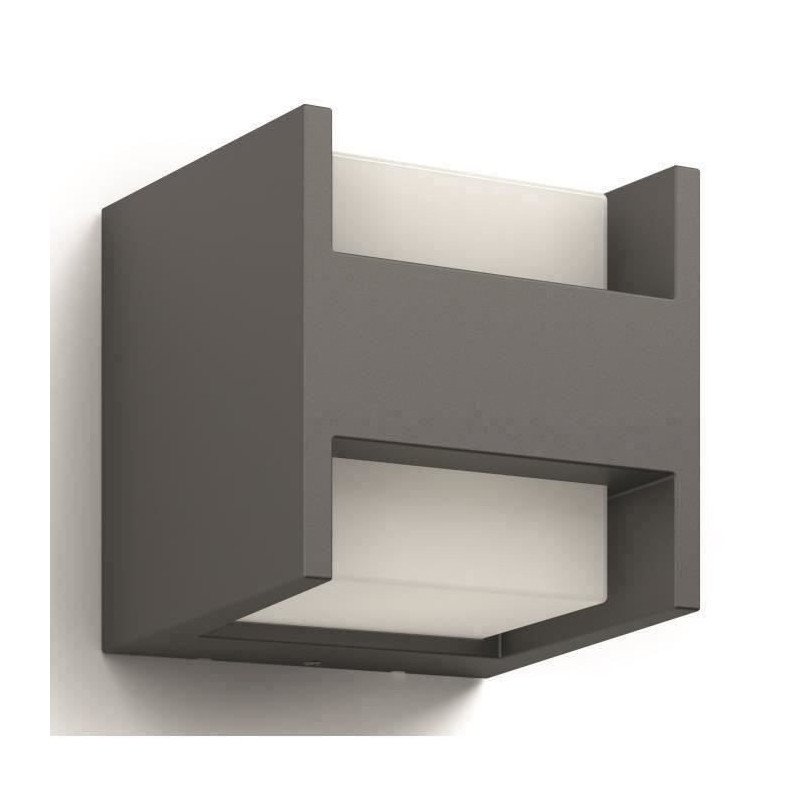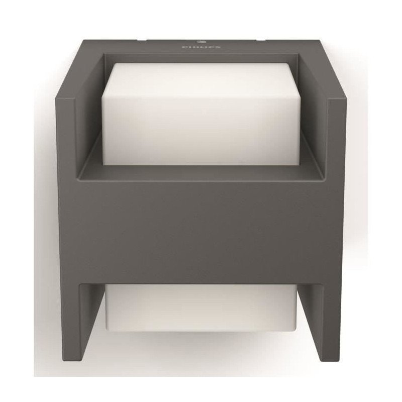 Matieres : Aluminium // Haut. : 13 Cm // Long. : // Larg. : 12,7 Cm // Diam. : // Profondeur : 13 Cm // Marque : Philips // Couleur : Anthracite // Culot : Led // Puissance : 4,5w Led - 800lm // Voltage : 220 V // Indice Ip : Ip44 // Poids : 0,53 Kg // Nbre Ampoule : 2 // Ampoule Incluse : Oui // Garantie : 2 Ans