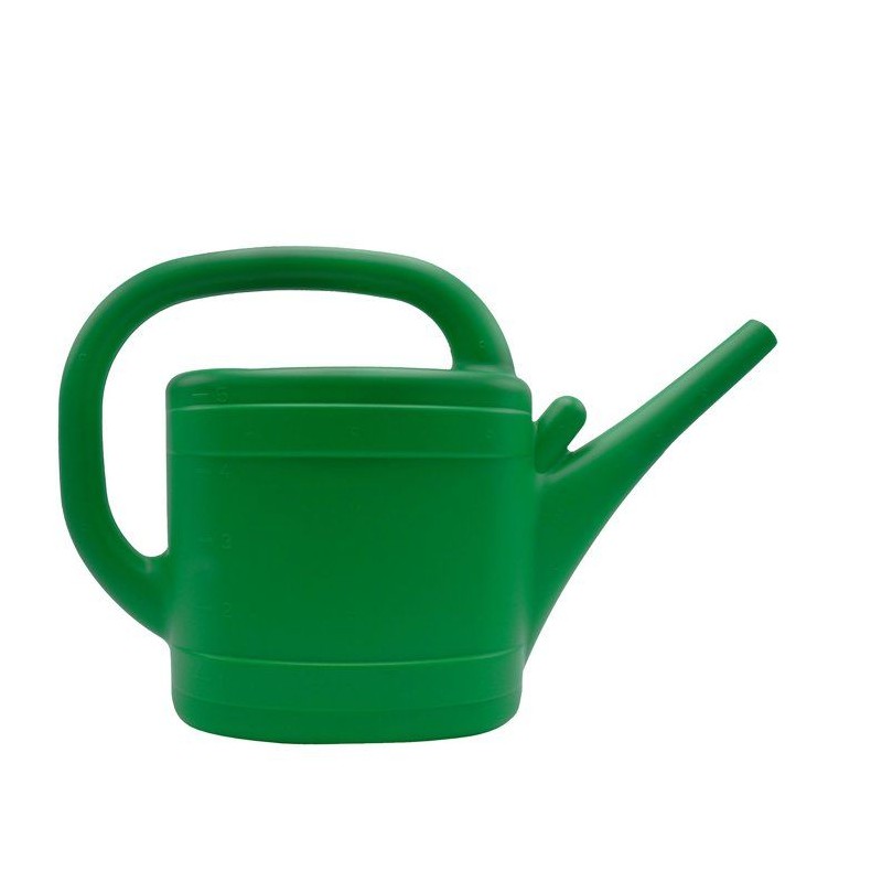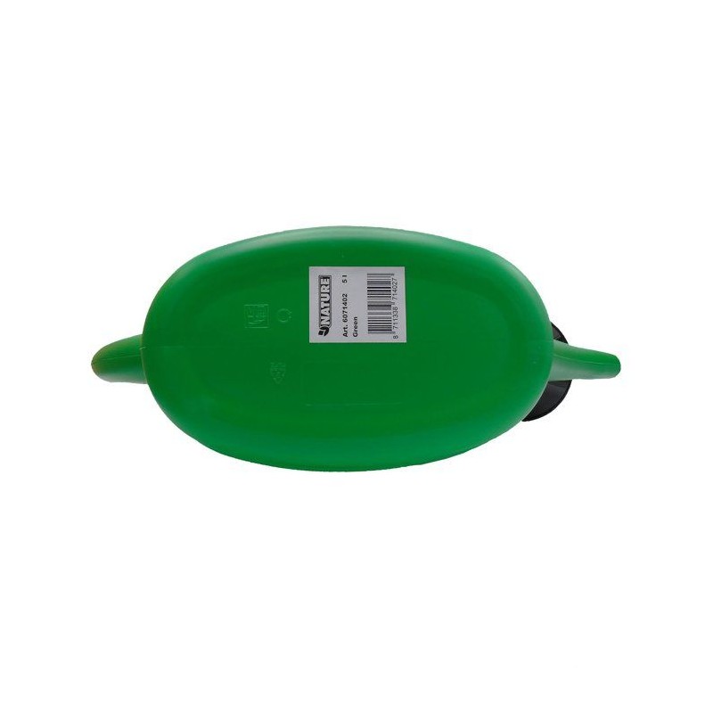 Arrosoir Nature d'une capacité de 5 litres, en PE traité anti-UV de forme ovale de couleur verte, fourni avec une pomme d'arrosage.