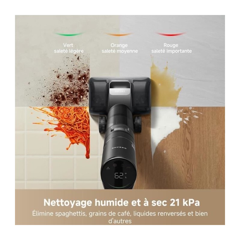 DREAME H15 Pro Aspirateur Laveur, Bras robotis AI DescendReach, Triple arte, 21 kPa, antinuds, Lavage Brosse immersif 100C