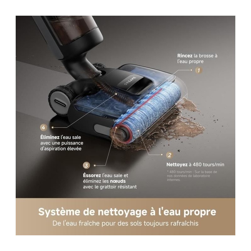 Bras robotis AI DescendReach GapFree_x000D_ Couverture triple arte efficace avec zro espace oubli_x000D_ Aspiration jusqu' 21 000 Pa_x000D_ Racleur rsilient TangleCut_x000D_ Lavage de la brosse avec immersion 100 C ThermoTub_x000D_ Schage hermtique et silencieux en 5 min 90 C