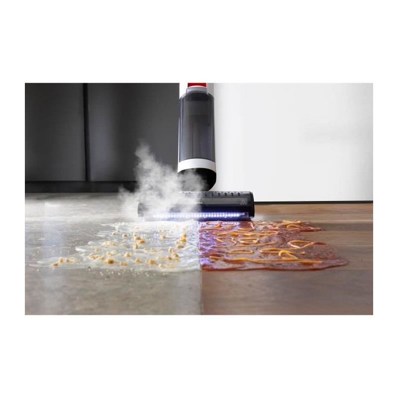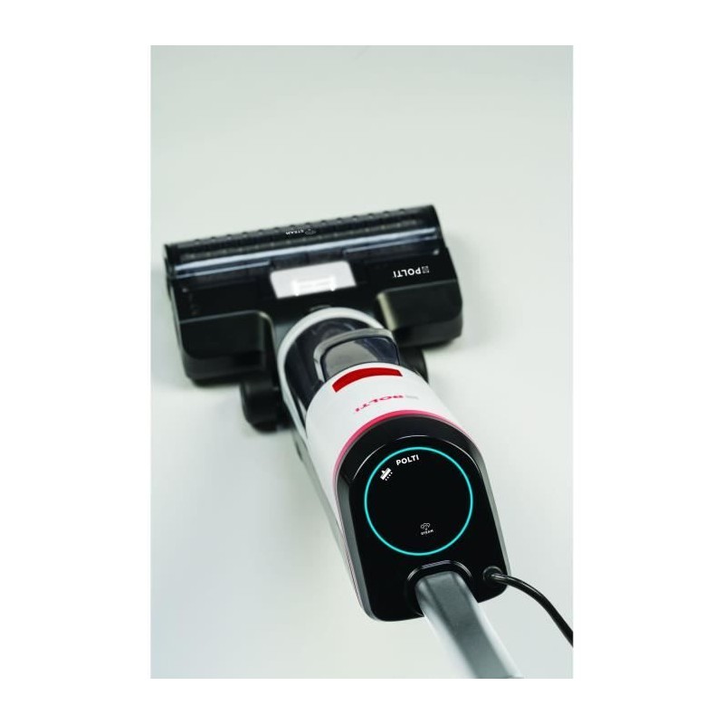 Polti RollySteam est l'aspirateur laveur de sols multifonction qui aspire, lave et assainit a la vapeur, éliminant jusqu'a 99,999% des bactéries, des germes et des virus* sans utiliser de produits chimiques. Grâce a sa brosse rotative et a sa LED frontale, il élimine meme les saletés les plus tenaces, du parquet aux tapis a poils courts, et il est idéal pour les propriétaires d'animaux. Le systeme d'auto-nettoyage avec séchage automatique de la brosse et la fonction de détartrage "Calc Cleaning" maintiennent le Polti RollySteam propre, pour des performances optimales a tout moment. L'écran LED et l'assistance vocale rendent l'utilisation simple et intuitive.
