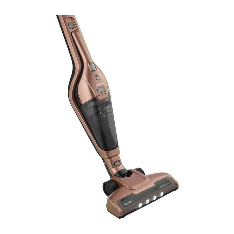 L'aspirateur balai Sencor SVC 0606GD est un modele 3 en 1 sans fil, léger et maniable. Il offre une autonomie de 45 minutes, une filtration HEPA efficace et une brosse rotative pour un nettoyage optimal sur tous types de surfaces. Sa mini-brosse pour animaux facilite l'aspiration des poils. Idéal pour un usage quotidien.