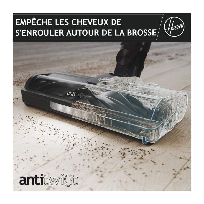 L'aspirateur balai sans fil HOOVER HF1 Plus Flex HF1P10HX offre un nettoyage efficace avec son moteur de 165W et une puissance de 40AW. Sa batterie Lithium de 14.8V assure 45 minutes d'autonomie. Avec un réservoir de 0,7L, il est facile a vider. Équipé de la technologie ANTI-TWIST et d'un éclairage LED, il est parfait pour tous types de sols.