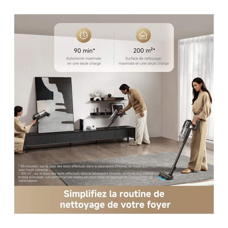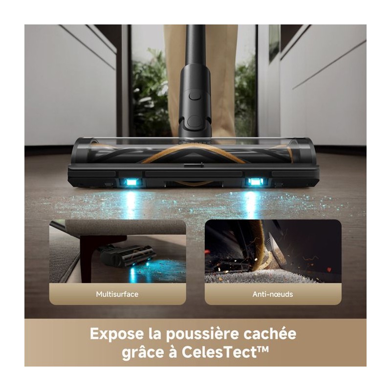 Découvrez le Dreame Z10, l'aspirateur balai sans fil qui allie puissance et efficacité. Avec une aspiration impressionnante de 210 AW et un systeme de filtration HEPA capturant 99,99 % des particules*, il garantit un nettoyage en profondeur tout en préservant la qualité de l'air. Sa brosse multisurface équipée de la technologie CelesTect(TM) s'adapte automatiquement a chaque type de sol pour une performance optimale. Léger, maniable et doté d'une autonomie allant jusqu'a 90 minutes, le Z10 est l'allié idéal pour un intérieur impeccable sans effort.