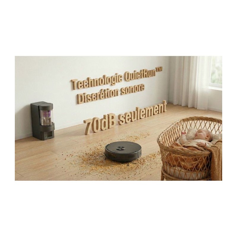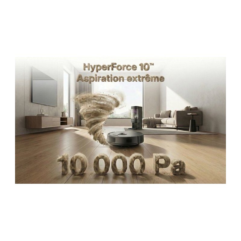 Le robot aspirateur laveur EZICLEAN® CyberFlow MAX allie simplicité, efficacité et autonomie pour assurer l'entretien quotidien de votre intérieur sans effort. Sa station AutoClean Cyclonic Base 2L(TM) sépare les poussieres fines et offre jusqu'a 36 jours d'utilisation sans vidage manuel. Grâce au EcoDrop System(TM), la vidange est sans sac et sans consommables, pour un entretien propre et économique. Doté de la navigation LIDAR 12(TM), il cartographie jusqu'a 12 metres avec précision, évite les collisions et optimise ses trajets pour un nettoyage ordonné. Son moteur HyperForce 6(TM) délivre 10 000 Pa d'aspiration, idéal pour éliminer poussieres, miettes et débris du quotidien sur sols durs et tapis fins. Le DailyMop System(TM) apporte une finition humide douce via un réservoir de 150 ml, parfait pour enlever les traces et rafraîchir les sols. La filtration PureStream HEPA(TM) capture jusqu'a 99,5 % des allergenes, améliorant durablement la qualité de l'air. Avec son fonctionnement QuietRun(TM) (= 86 dB), il reste discret a toute heure. Compact, pratique et intelligent, le CyberFlow MAX est le robot idéal pour un entretien régulier, simple et efficace.