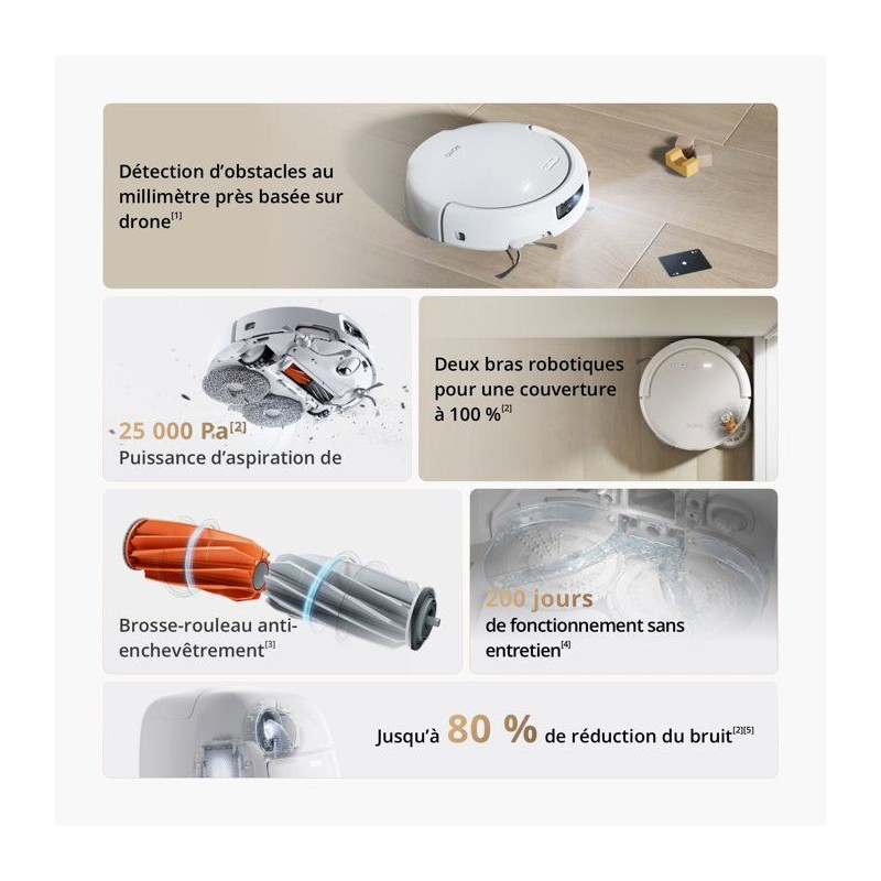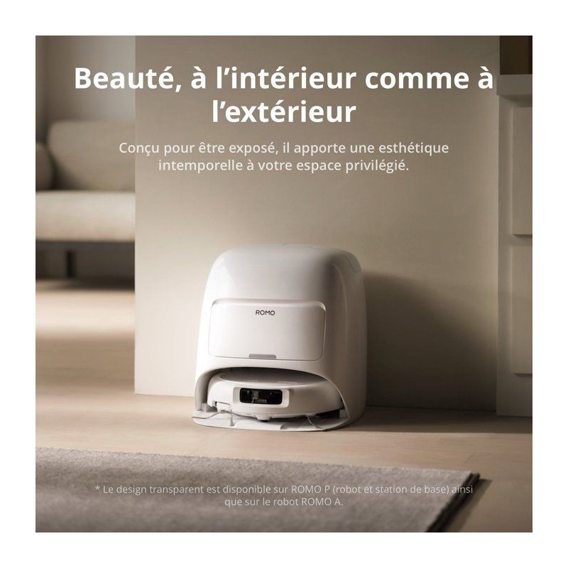 ROMO S sublime instantanément votre intérieur. Il combine une perception de pointe et une technologie inspirée des drones phares. Grâce a des capteurs avancés et des algorithmes intelligents, il assure un nettoyage profond et minutieux aussi bien sur les sols durs que sur les tapis, sans laisser aucune zone négligée.