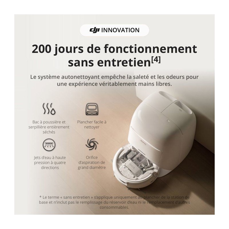 DJI ROMO S - Robot Aspirateur Laveur avec Station - 25 000 Pa - Détection de Niveau Drone - 200 Jours sans Maintenance
