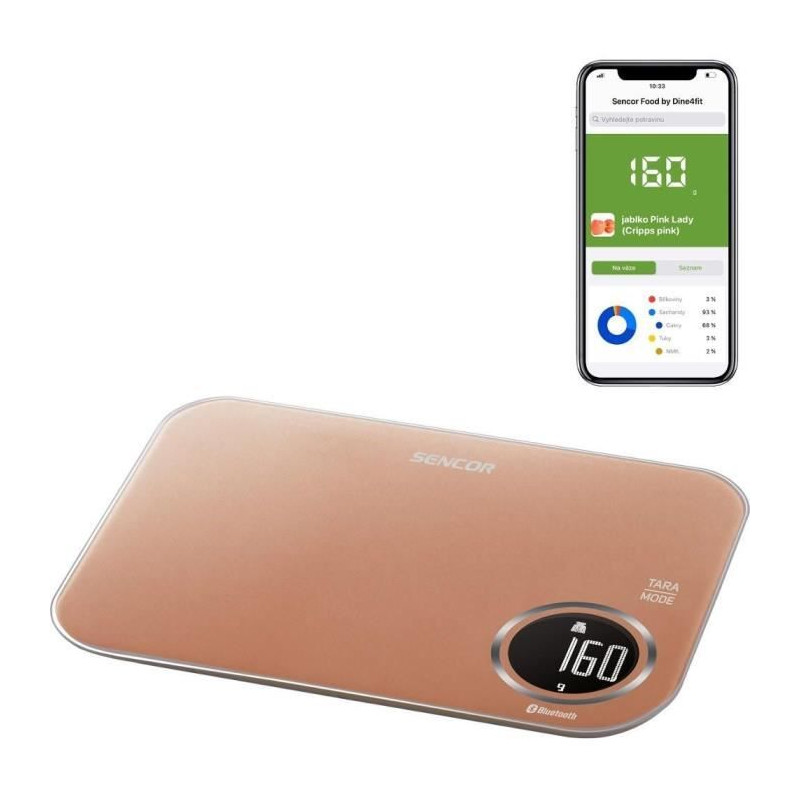 La balance de cuisine SENCOR SKS 7076GD offre une capacité de pesée jusqu'a 5 kg avec une précision de 1 g. Équipée d'un écran LCD rétroéclairé, elle propose trois modes de pesée et une fonction TARA intelligente. Connectée a l'application Sencor FOOD, elle fournit des informations nutritionnelles détaillées pour un suivi alimentaire optimal.