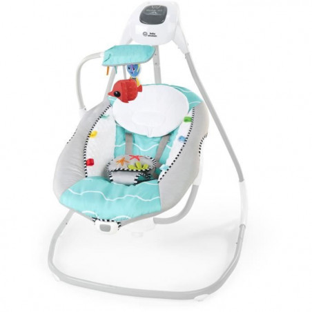 Bébé découvre tout un monde marin avec la balancelle Ocean Explorers de Baby Einstein. Facile a transporter, structure légere et compacte balancements sécurisés avec le harnais 5 points d'attache. Avec 8 mélodies classiques, 4 sons nature, bracelet jouet et 6 étiquettes.