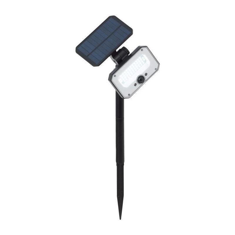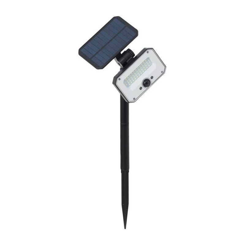 Spot extérieur a piquer LED et solaire JOPLIN. Coloris : noir. Matiere : plastique et verre. Puissance : 4 W. Luminosité : 1100 lumen 4100 Kelvin. Ampoule incluse.