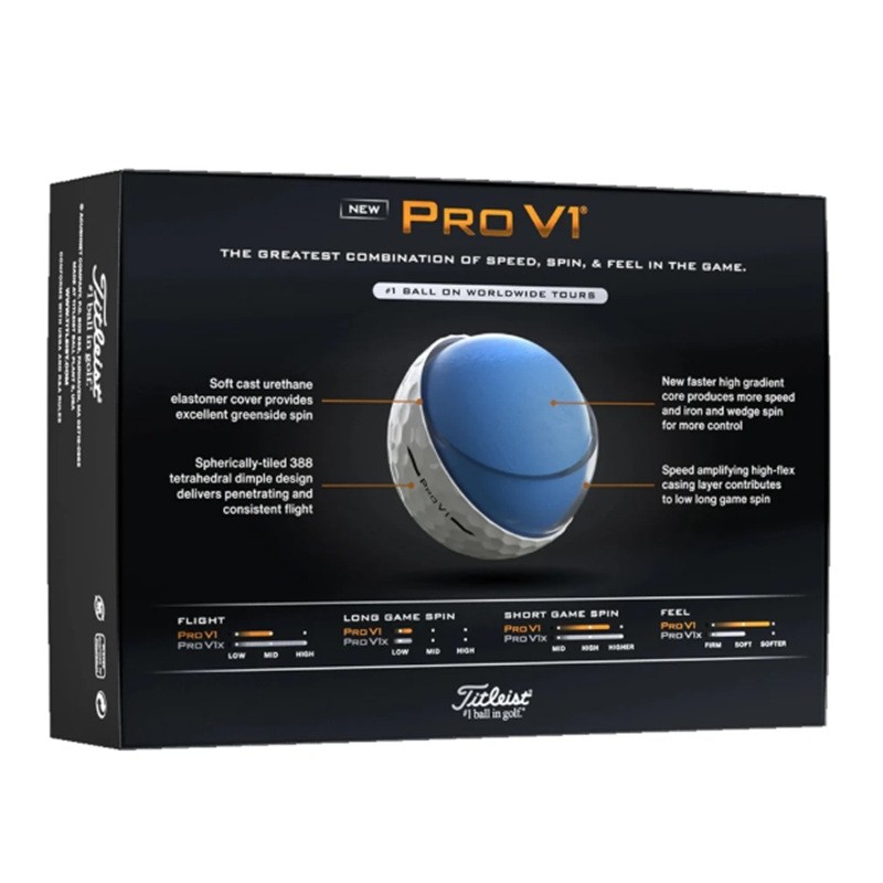 La nouvelle Pro V1, le choix de performance optimal pour la plupart des joueurs, et le modèle de balle le plus joué dans le monde, offre encore plus de distance et de régularité. Comparée à la Pro V1x, la Pro V1 vole plus bas et spin moins dans le long jeu, tout en produisant un spin similaire sur le green et un toucher plus doux. Surpassez vous grâce à la toute nouvelle Titleist Pro V1.