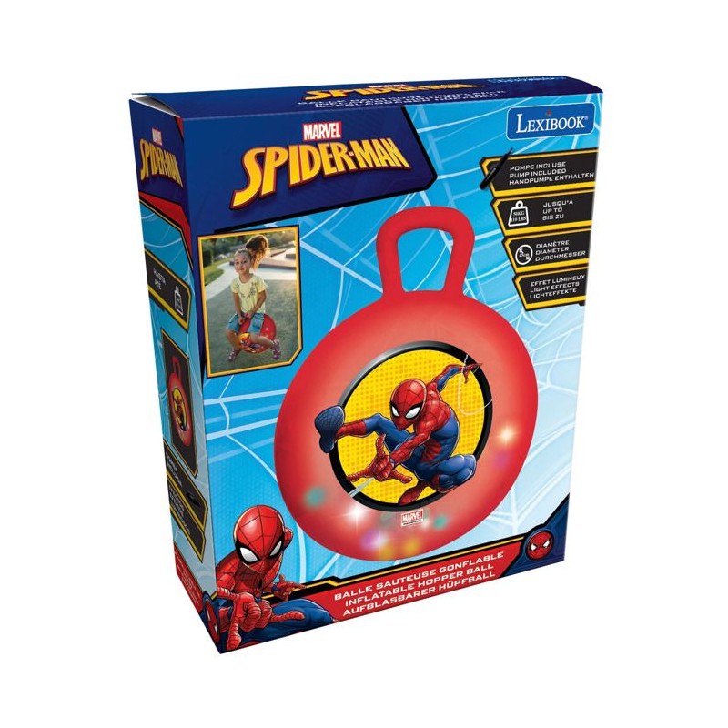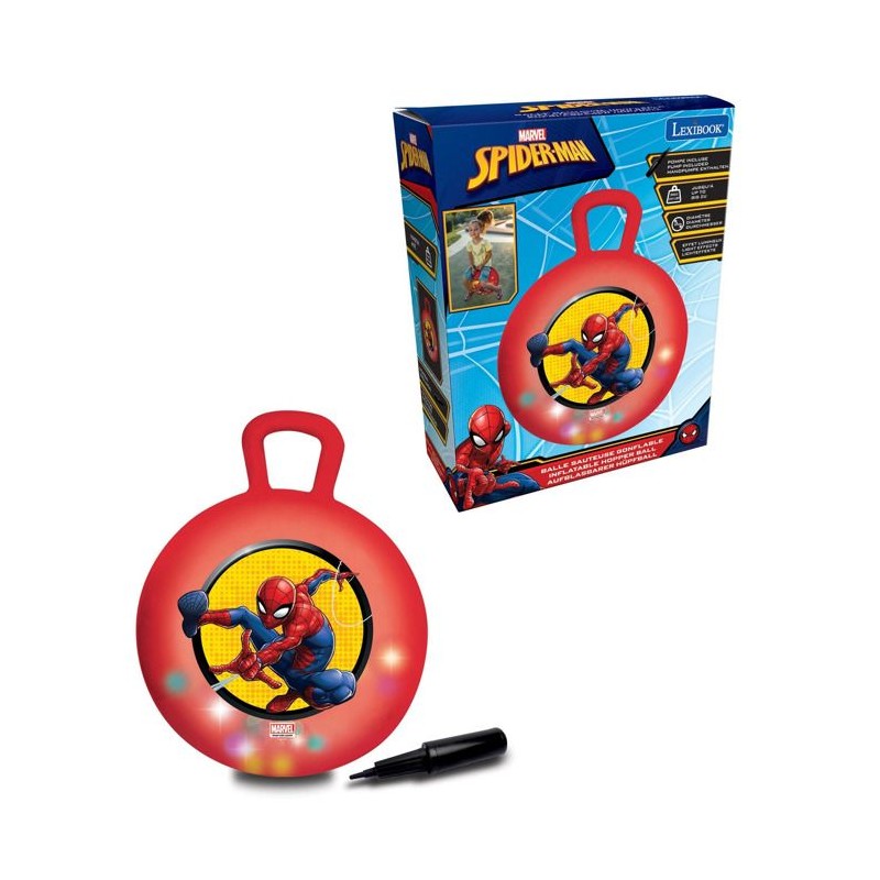 - Une balle sautoir avec un superbe design Spider-Man! - Avec effets lumineux - Taille idéale : 18""/45 cm convient aux enfants de 3 a 6 ans. - Sécurisé : L'enfant peut facilement saisir la poignée. Les enfants doivent jouer sous la supervision d'un adulte. - Facile a gonfler : Gonflé en moins de 4 minutes avec la pompe manuelle incluse.