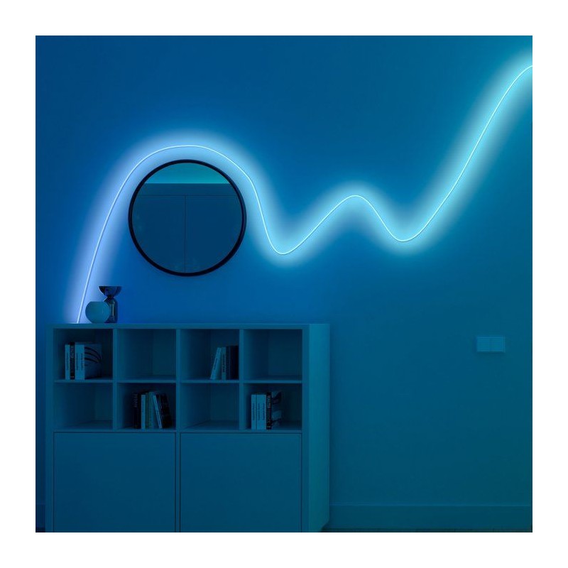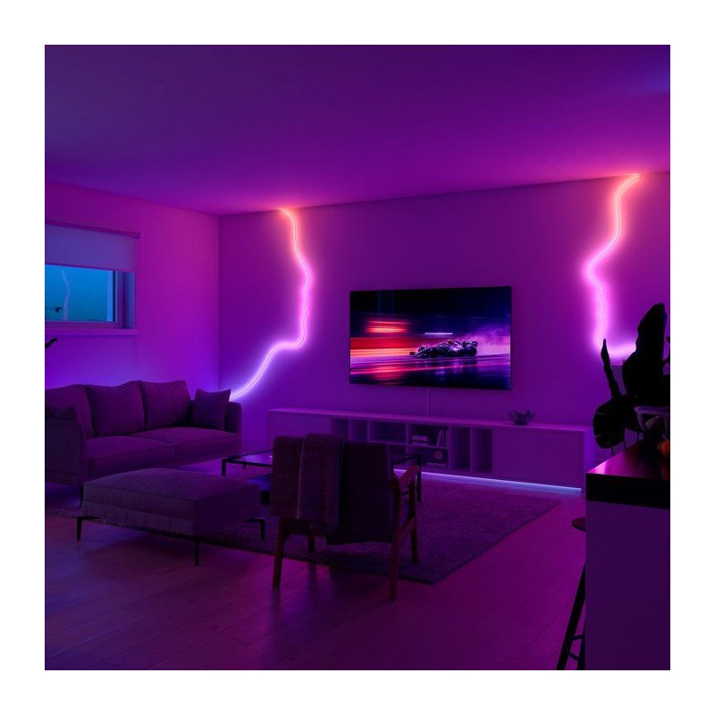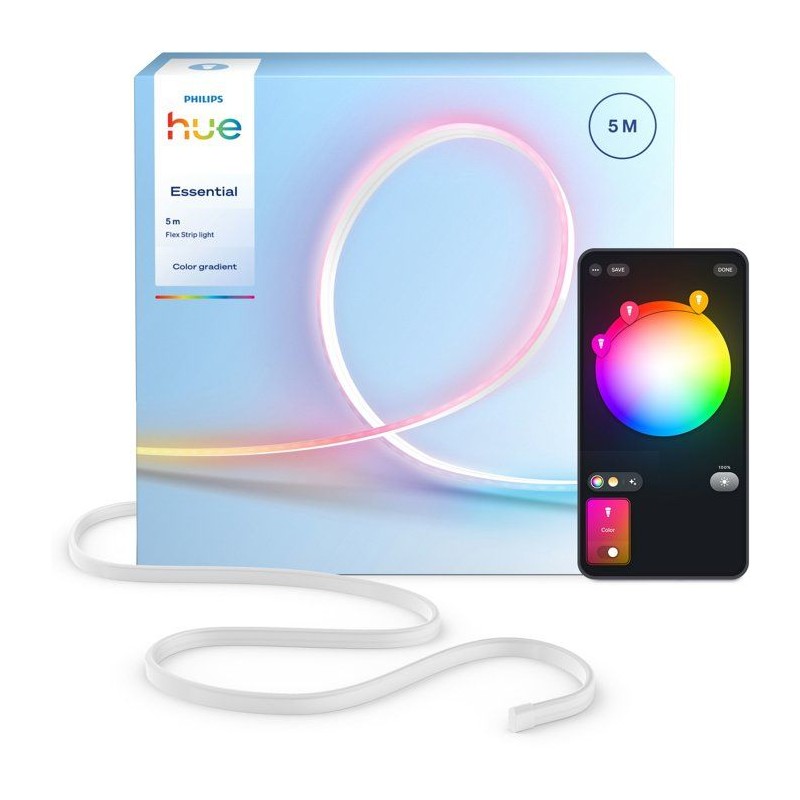 Bienvenue dans l'univers ludique et flexible de la décoration lumineuse : le ruban LED flexible Essential ! Donnez-lui la forme voulue et utilisez-le comme piece maîtresse de la décoration murale dans votre salon, bureau ou chambre d'enfant. Le ruban LED flexible permet de souligner les contours des miroirs et des meubles muraux. Réglez n'importe quel dégradé de couleurs, y compris des effets de lumiere néon captivants pour une ambiance encore plus dynamique. Entrez dans l'univers de l'éclairage connecté Hue : contrôlez vos lampes avec l'application Hue ou a l'aide d'un assistant vocal, configurez des automatisations et faites votre choix parmi des dizaines de scénarios de lumiere.