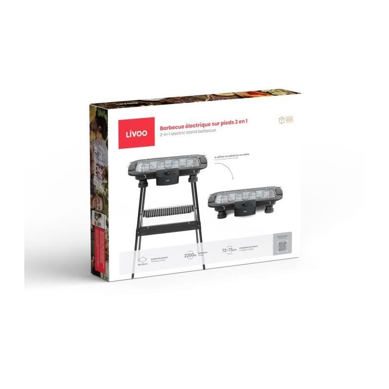 Découvrez le barbecue électrique sur pieds 2 en 1 LIVOO DOM506, idéal pour une utilisation sur table ou sur pieds. Avec 2200W de puissance et un thermostat ajustable, il garantit une cuisson parfaite. Sa grille en acier chromé et ses éléments amovibles facilitent l'entretien. Utilisation intérieure uniquement.