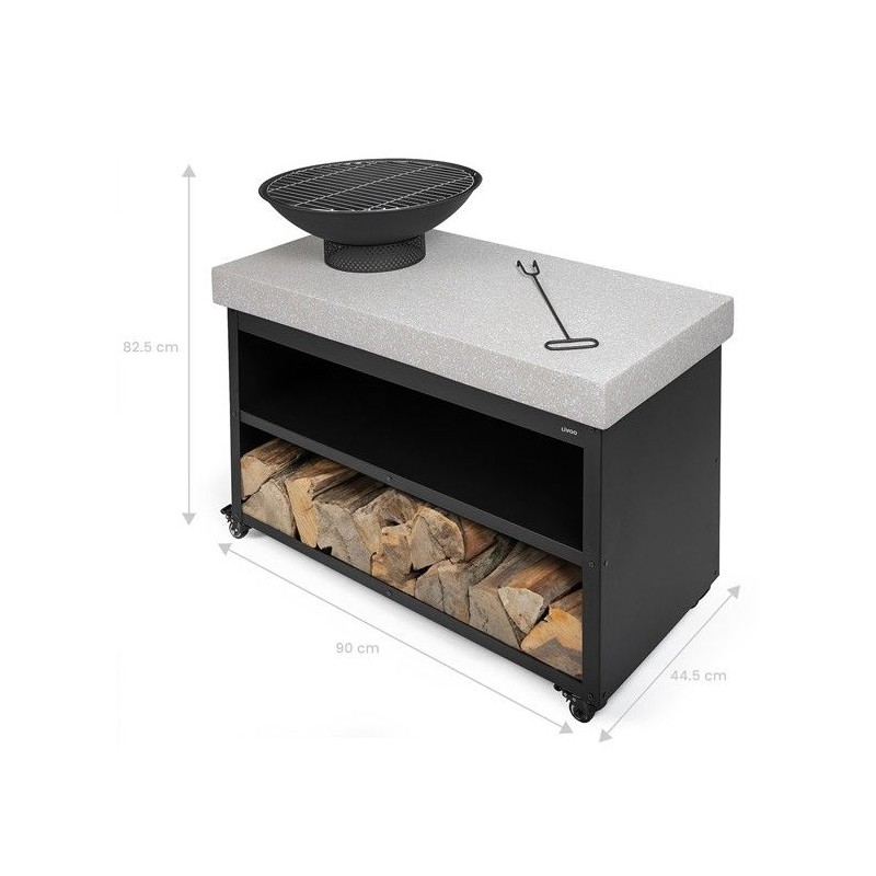 Ce brasero barbecue sur desserte LIVOO DOC329 est ultra polyvalent. Il permet de se réchauffer, de cuire au barbecue ou de préparer des repas. Avec ses 4 roues, il est facile a déplacer et dispose de deux espaces de rangement. Sa grille de cuisson amovible de ø41 cm facilite le nettoyage.