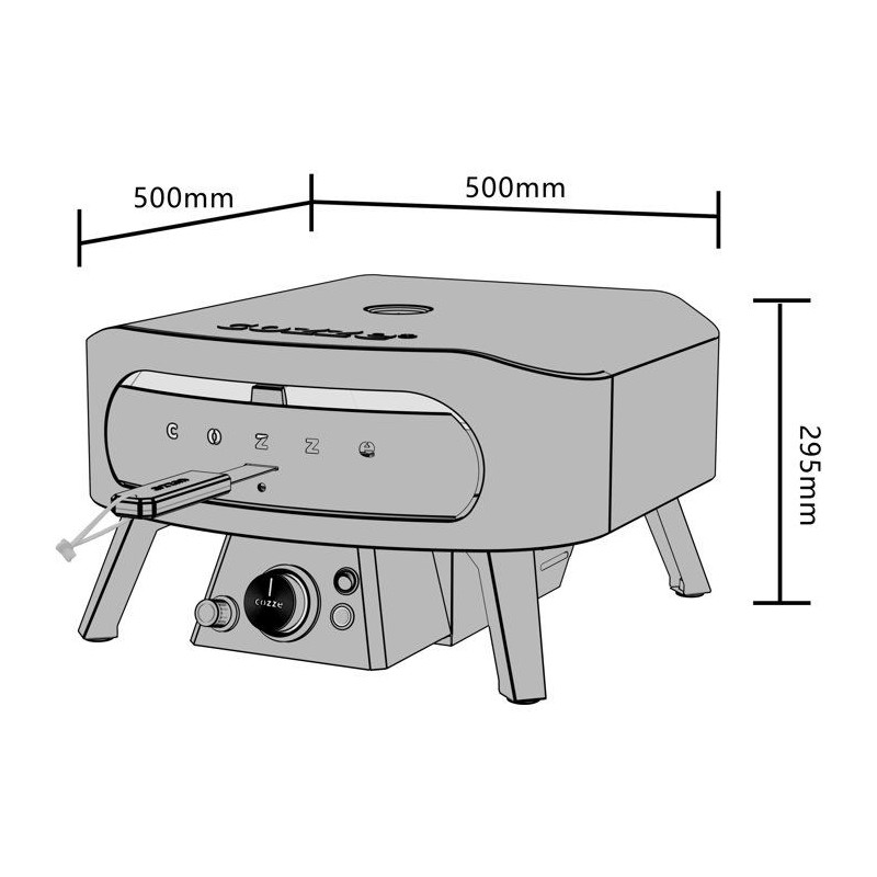 Four a pizza a gaz puissant et compact pour des pizzas authentiques en qualité restaurant a domicile et en extérieur. Préparez des pizzas croustillantes et savoureuses en quelques minutes grâce a sa puissance élevée de 6,0 kW et son brûleur en U en acier inoxydable SS409, assurant une diffusion homogene de la chaleur. Sa pierre en cordiérite rotative Ø345 mm garantit une cuisson uniforme et une croûte parfaitement dorée, tandis que la porte frontale incluse optimise la rétention de chaleur pour des résultats professionnels. Capable d'atteindre une température interne jusqu'a 630 °C et une température de pierre entre 445 et 510 °C, ce four chauffe rapidement en environ 20 minutes pour une utilisation efficace. Son allumage par impulsion facilite la mise en route, et son bouton LED (blanc/rouge) apporte une touche moderne. Conçu pour accueillir des pizzas jusqu'a Ø34 cm (H 8 cm), il dispose d'un corps a double paroi robuste (intérieur SS430, extérieur noir peint) offrant durabilité, sécurité et excellente isolation thermique. Design noir intégral élégant avec logo Cozze. Équipé de 4 pieds avec patins en caoutchouc. Conforme aux normes CE & LFGB.