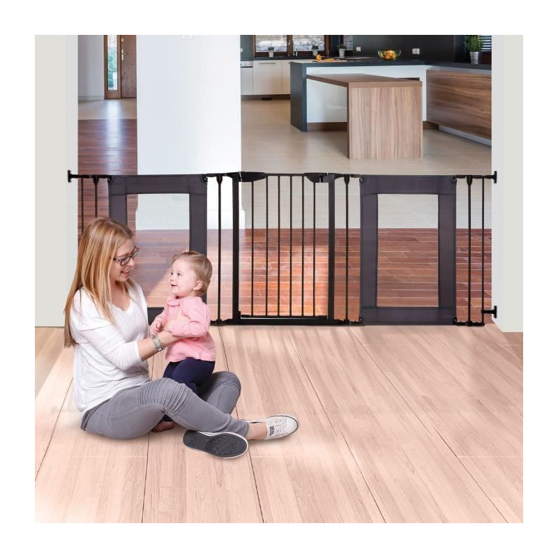 Barriere de sécurité - DREAMBABY - DENVER - 3 panneaux - 85,5-200 x 74 cm - Bidirectionnel - Noir