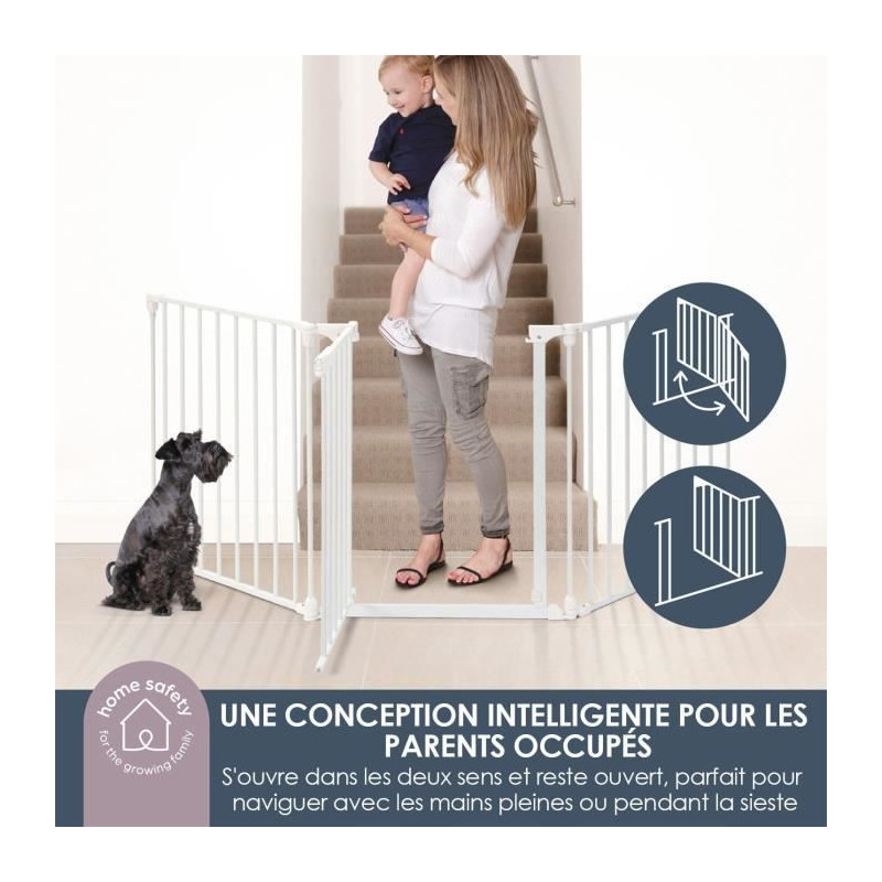 La barriere Dreambaby Discovery 3-Panel FLEX Configure est une solution polyvalente et sûre pour les espaces larges ou irréguliers. Avec ses panneaux réglables, elle s'adapte aux ouvertures de 74,5 cm a 195 cm et mesure 74 cm de haut. Idéale pour une utilisation en haut ou en bas des escaliers, dans les couloirs larges ou autour des cheminées. Caractéristiques principales : - Design flexible a 3 panneaux : S'adapte a une grande variété d'espaces et d'aménagements. - Largeur réglable : convient aux ouvertures de 74,5 cm a 195 cm de large. - Barriere haute : la hauteur de 74 cm offre une sécurité supplémentaire pour les bébés et les animaux domestiques. - Fonction intelligente de maintien en position ouverte : Maintient la barriere ouverte lorsque cela est nécessaire. - Arret unidirectionnel : Contrôle le sens de rotation de la barriere pour plus de sécurité dans les escaliers. - Monté sur le matériel : Installation sûre et stable. - Finition blanche élégante : se fond dans un décor moderne. Idéal pour les maisons qui ont besoin d'une sécurité enfant adaptable avec un look propre et moderne.