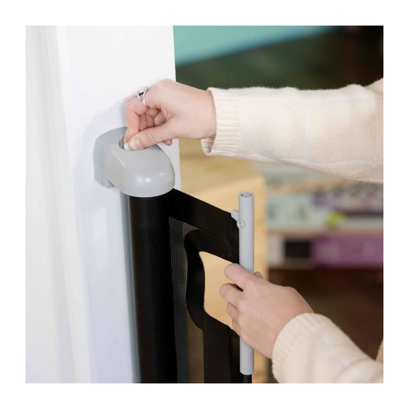 Vos amours sont en sécurité avec cette barriere stylée pour bébés et chiens Summer by Ingenuity's Thruway 52W Series. Avec ses 76cm de haut, cette barriere escamotable en maille filetée noire conçue par le leader en matiere d'Innovation et Barrieres de Sécurité, vous savez que vous avez une barriere sécurisée au top, quand vous en avez besoin elle se replie quand vous n'en avez plus besoin. Summer by Ingenuity est la SEULE marque de barriere de sécurité qui innove de façon significative et rend la vie avec bébé beaucoup plus facile. Ce modele de barriere Tuck Away est unique et vous permet de fermer rapidement les couloirs et embrasures de portes jusqu'a 132cm. Le choix idéal pour les parents qui aiment la sécurité, paroi filetée pour cette barriere transparente pour garder un oeil sur les enfants ou les animaux. La technologie de fermeture automatique garantit la sécurité totale, pas besoin de faire quoi que ce soit pour verrouiller la barriere apres fermeture. La barriere se verrouille des que vous lâchez le loquet du côté opposé, vous etes tranquille, vous savez que la barriere est bien fermée. Pas besoin de barriere ? Quand la barriere est escamotée, elle est bien rangée dans son compartiment, cachée vous profitez de beaucoup d'espace ouvert dans la maison. Sécurité testée et approuvée par des tiers. Outils recommandés pour l'installation (non inclus) : perceuse, tournevis cruciforme, crayon.