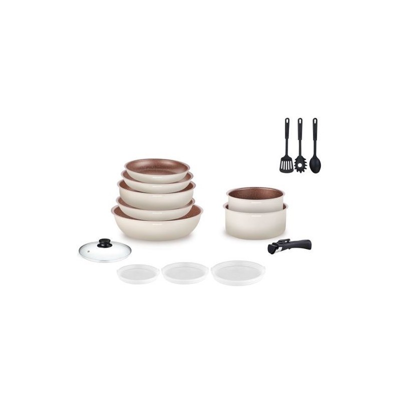 Batterie de cuisine Arthur Martin Batterie 18 pieces creme AM1453 CREME