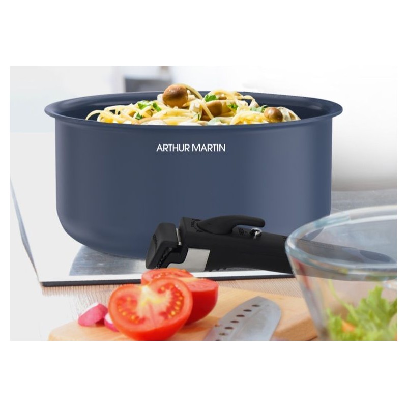 Set de 3 casseroles - Tous feux dont induction - ARTHUR MARTIN - AM0320 - Céramique - Ø 16-18-20 cm + poignée amovible - Bleu