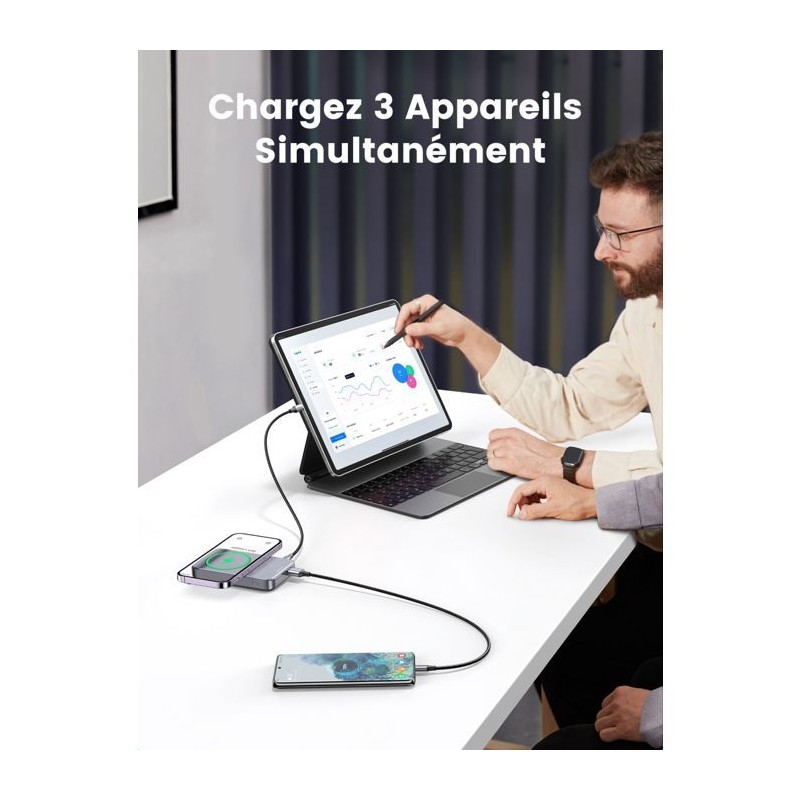 La batterie externe UGREEN 20,000 mAh est une solution idéale pour rester alimenté toute la journée. Sa capacité élevée permet de recharger plusieurs fois un smartphone ou une tablette, tandis que la puissance de 20W assure une charge rapide et efficace. Son design gris élégant et sa finition soignée offrent un produit moderne et robuste, facile a transporter pour les voyages ou l'usage quotidien. Elle integre des protections contre la surcharge, les courts-circuits et la surchauffe, garantissant la sécurité de vos appareils. Polyvalente et fiable, cette batterie externe est un compagnon indispensable pour tous ceux qui ont besoin d'énergie en continu.