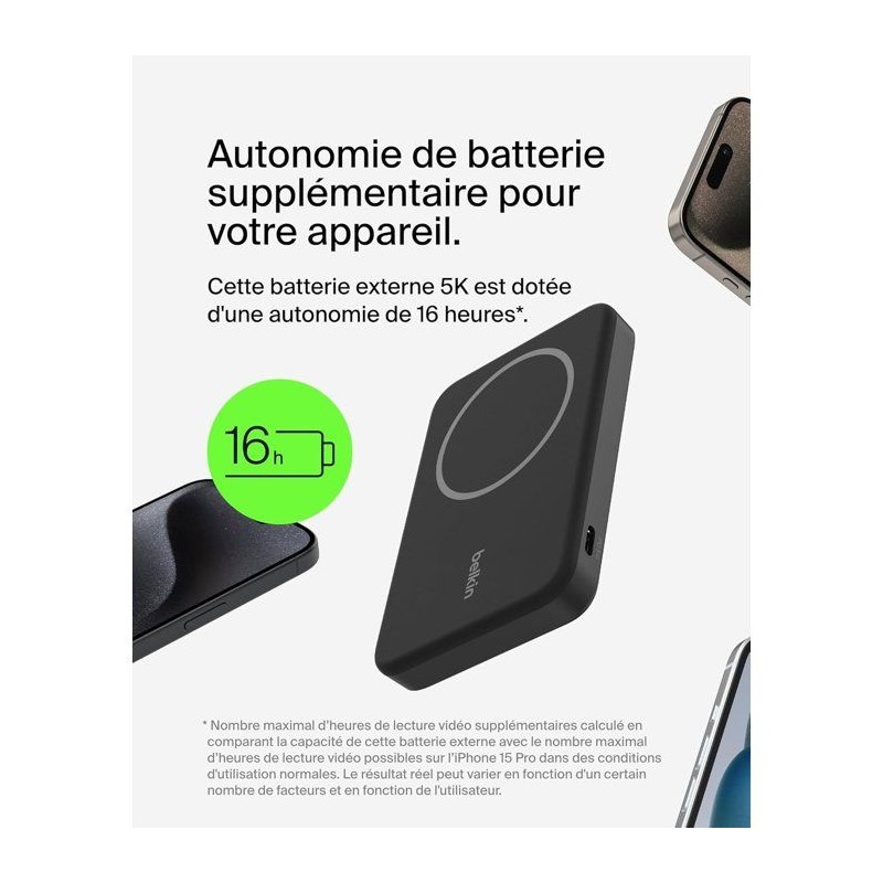 Batterie externe - BELKIN - 5 000 mAh - MagSafe - 15 W - Noir