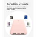 Batterie USB-C 10 000 mAh rose : élégance et performance pour une recharge sans compromis.