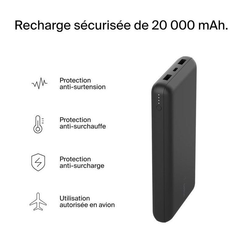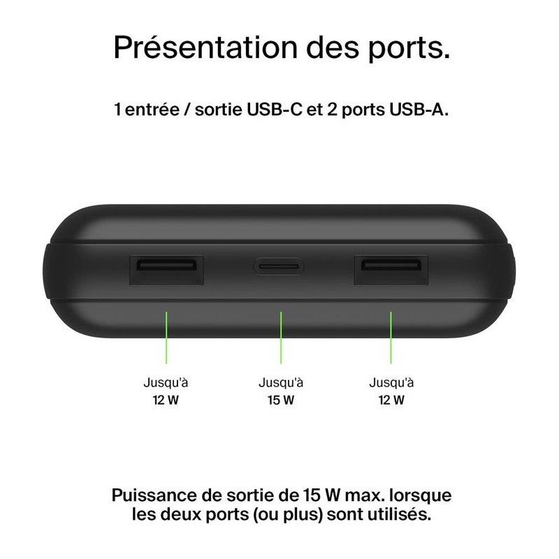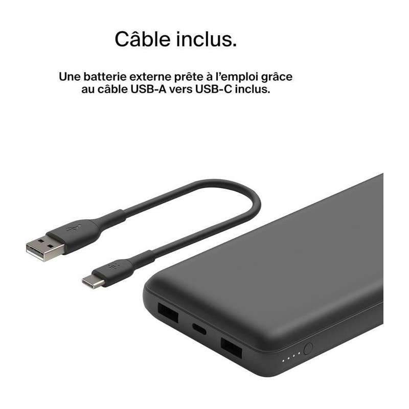 Batterie externe - BELKIN - 20 000 mAh - USB-A & USB-C - 15 W - Noir