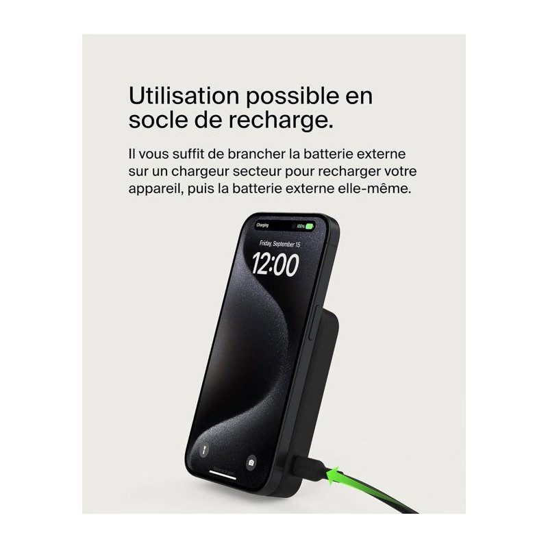 Puissance et praticité : une batterie compacte avec fixation magnétique pour recharger votre iPhone où que vous soyez.