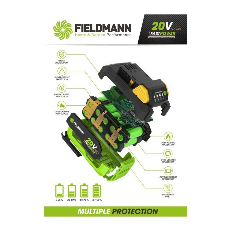 Découvrez la batterie 20V FIELDMANN 4Ah, idéale pour tous vos outils de la gamme 20V. Sa technologie Li-ion garantit une autonomie prolongée et une alimentation fiable pour tous vos travaux. Profitez d'une performance durable et efficace.