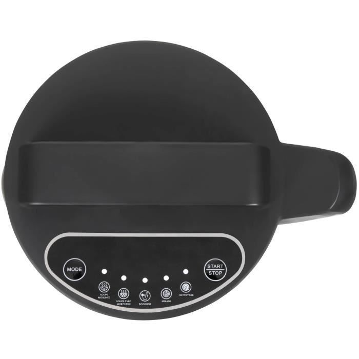 Le blender chauffant a soupe est un appareil polyvalent conçu pour simplifier la préparation de repas faits maison - Grâce a ses 5 fonctions intégrées - soupe moulinée, soupe avec morceaux, boissons, mixeur et nettoyage automatique - il s'adapte a tous les besoins culinaires - Son systeme de chauffe permet une préparation rapide en 20 a 30 minutes, idéal pour les repas du quotidien - La fonction mémoire de 2 minutes assure une reprise automatique du programme en cas d'interruption, garantissant une cuisson continue et homogene - Les voyants lumineux de programme offrent une lecture claire de l'état de fonctionnement, tandis que l'avertisseur sonore signale la fin du cycle pour plus de praticité - Ce blender multifonction est équipé d'un moteur puissant et d'un systeme de chauffe intégré, permettant de mixer et cuire directement dans le bol. Son design ergonomique et sa facilité d'entretien grâce a la fonction de nettoyage en font un choix idéal pour les amateurs de cuisine saine et rapide. Parfait pour réaliser des soupes maison, des smoothies, des boissons chaudes ou froides, ce appareil de cuisine intelligent combine efficacité, rapidité et simplicité d'utilisation.