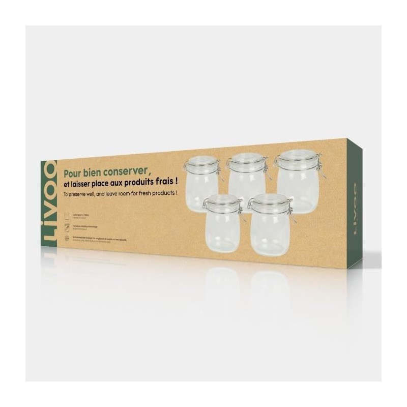 Set de 5 bocaux pour batch cooking - LIVOO - MEN400 - 5 bocaux - 750 mL - Verre borosciliate - Fermeture métallique