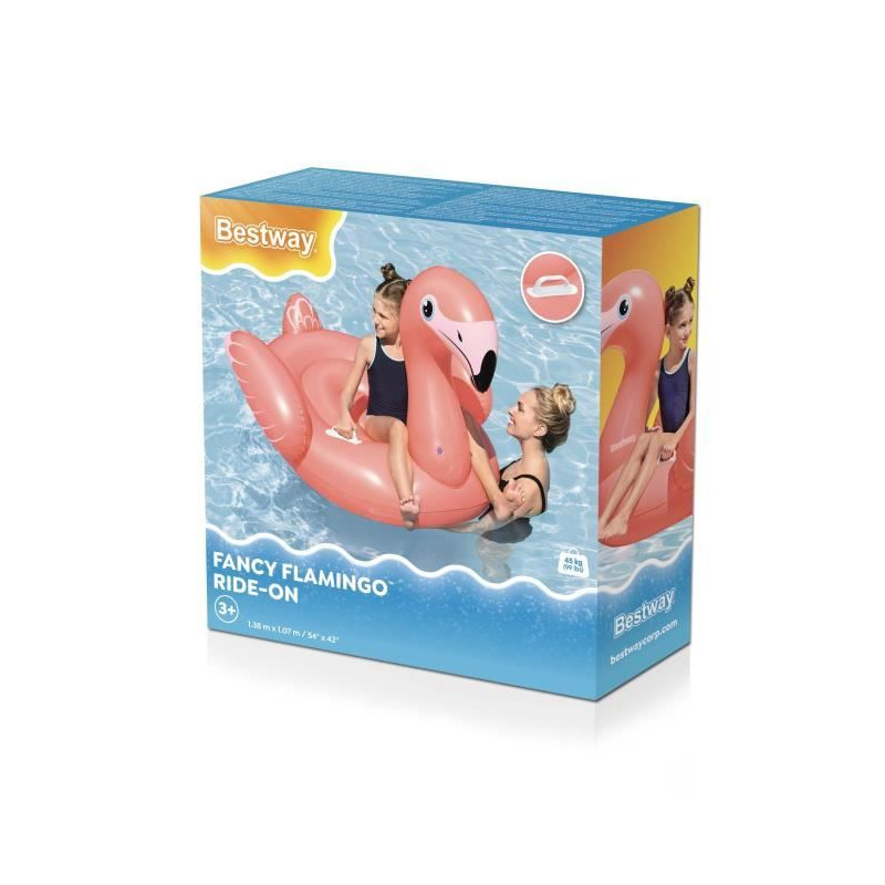 Découvrez la bouée a chevaucher Bestway en forme de flamant rose, idéale pour les enfants a partir de 3 ans. Avec des dimensions de 138 x 107 cm, elle est fabriquée en PVC durable et parfaite pour des heures de plaisir en extérieur. Sa couleur rose attrayante ravira les petits et apportera une touche de fun a vos journées a la piscine ou a la plage.
