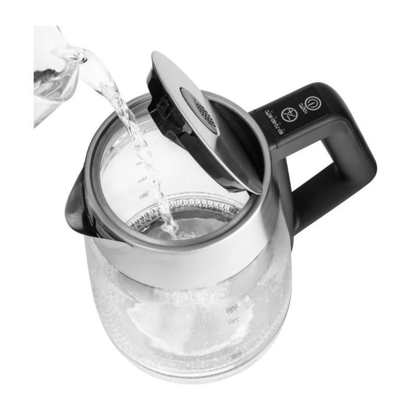 Bouilloire éléctrique Sencor SWK 1890SS - Volume 1,8 l Puissance absorbée : 2 200 W Réglages de température de l'eau : 60/70/80/90/100 °C Fonction maintien au chaud Éclairage LED interne Indication sonore marche/arret Triple systeme de sécurité Filtre anti-calcaire amovible et lavable Connecteur central 360° Poids sans base : 960 g
